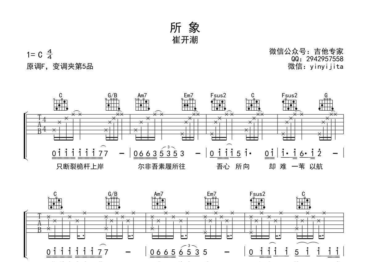 崔开潮《所象》吉他谱 - C调弹唱六线谱