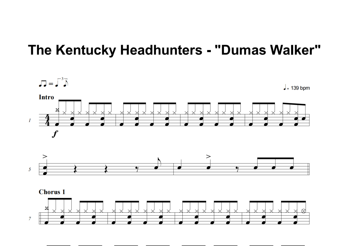 The Kentucky Headhunters《Dumas Walker》架子鼓谱