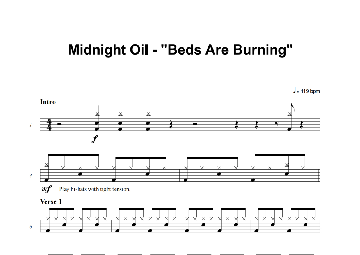 Midnight Oil《Beds Are Burning》架子鼓谱