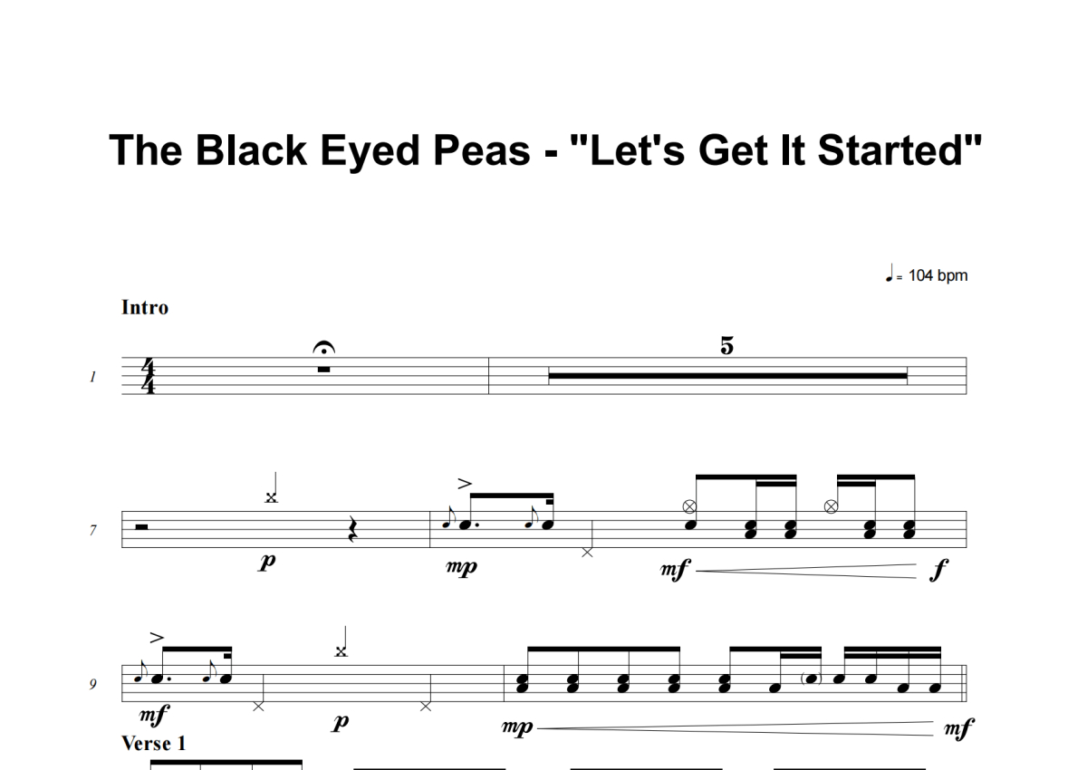 The Black Eyed Peas《Let's Get It Started》架子鼓谱