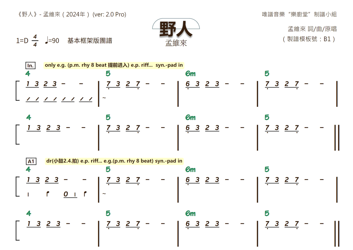 孟维来《野人》乐队总谱 - 基础框架版团谱