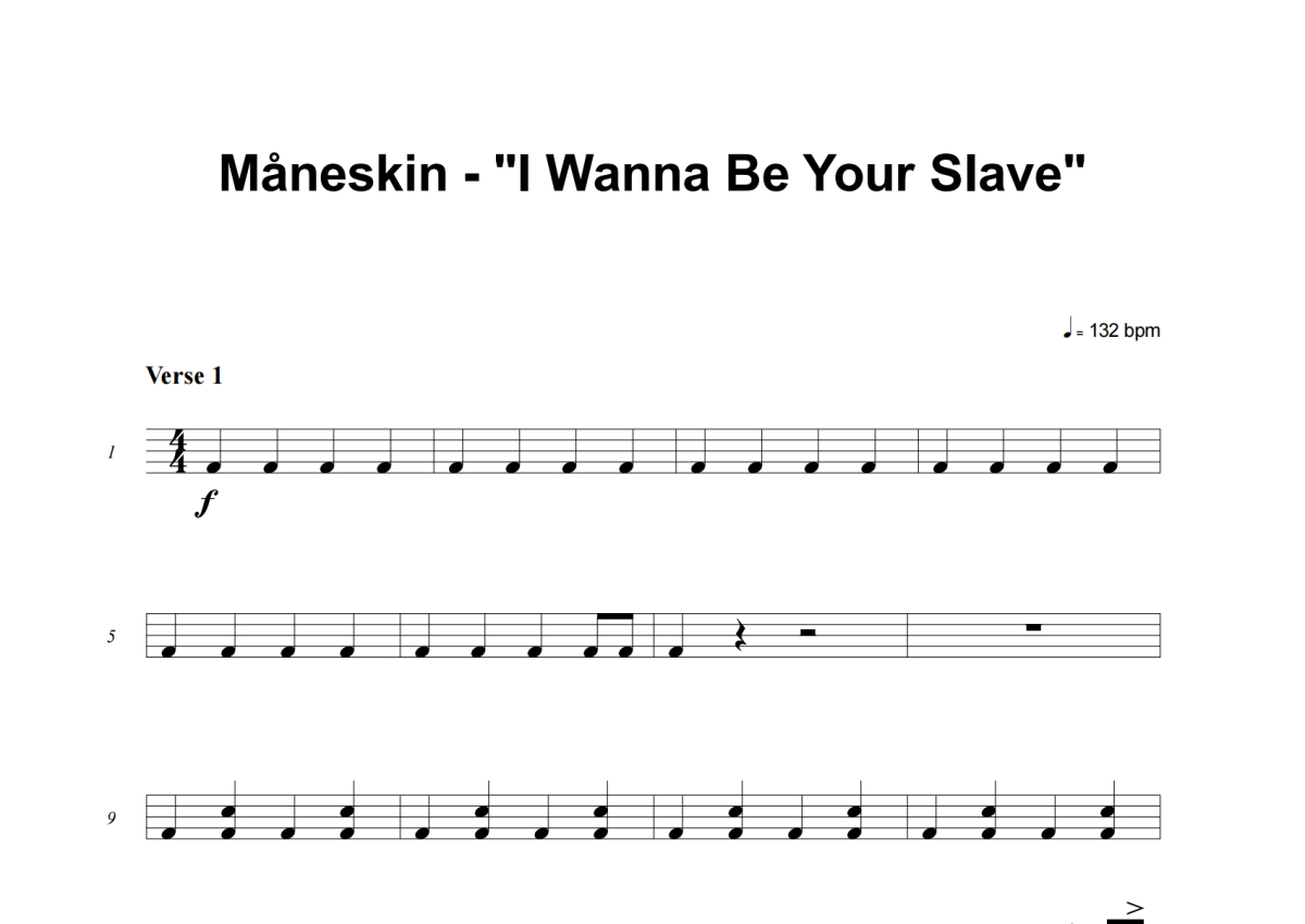 I Wanna Be Your Slave架子鼓谱 - Maneskin演唱