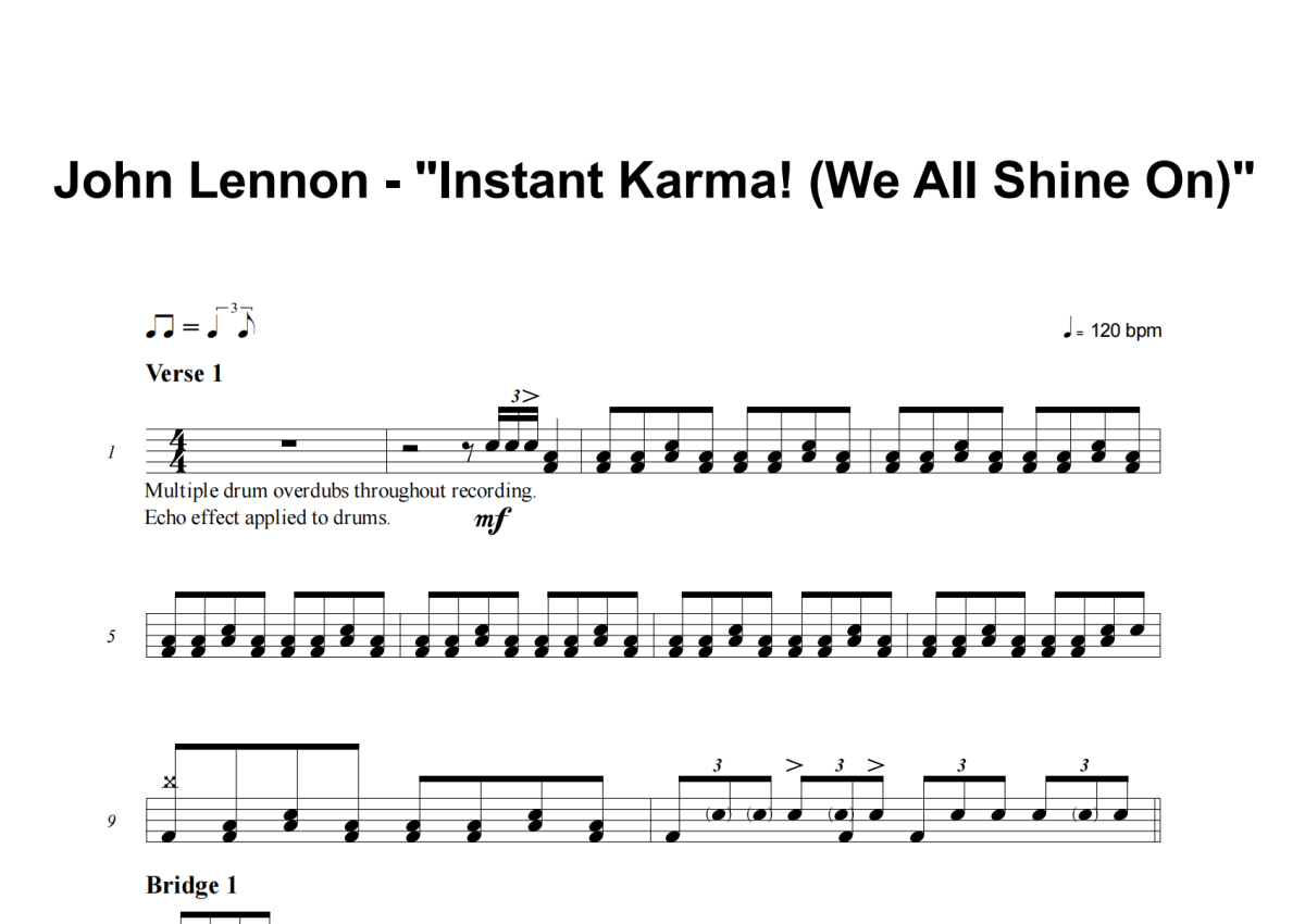 John Lennon《Instant Karma! (We All Shine On)》架子鼓谱