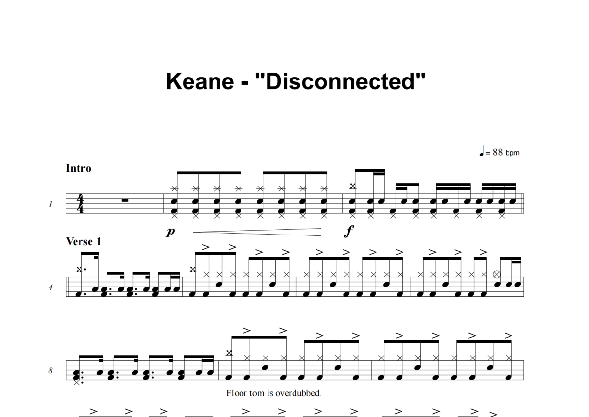 Keane《Disconnected》架子鼓谱