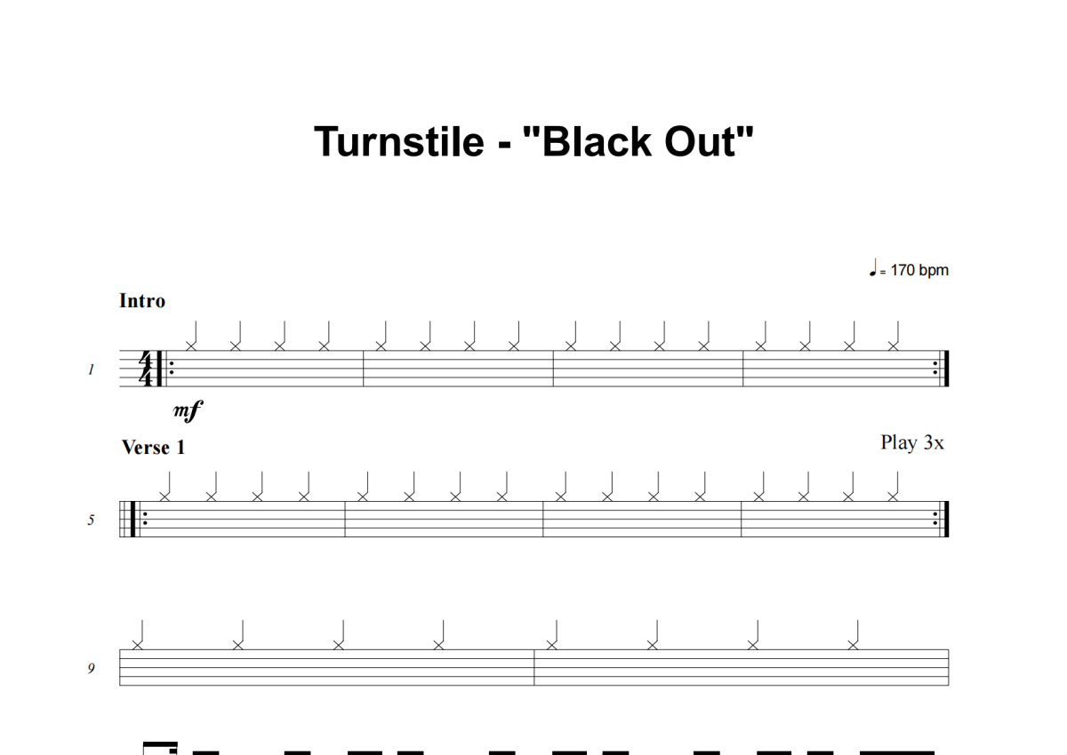 Turnstile《Blackout》架子鼓谱