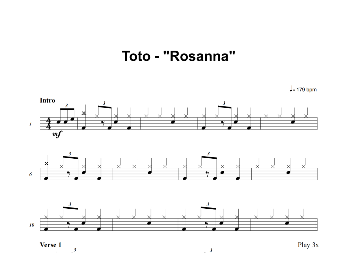 Toto《Rosanna (Easy Version)》架子鼓谱