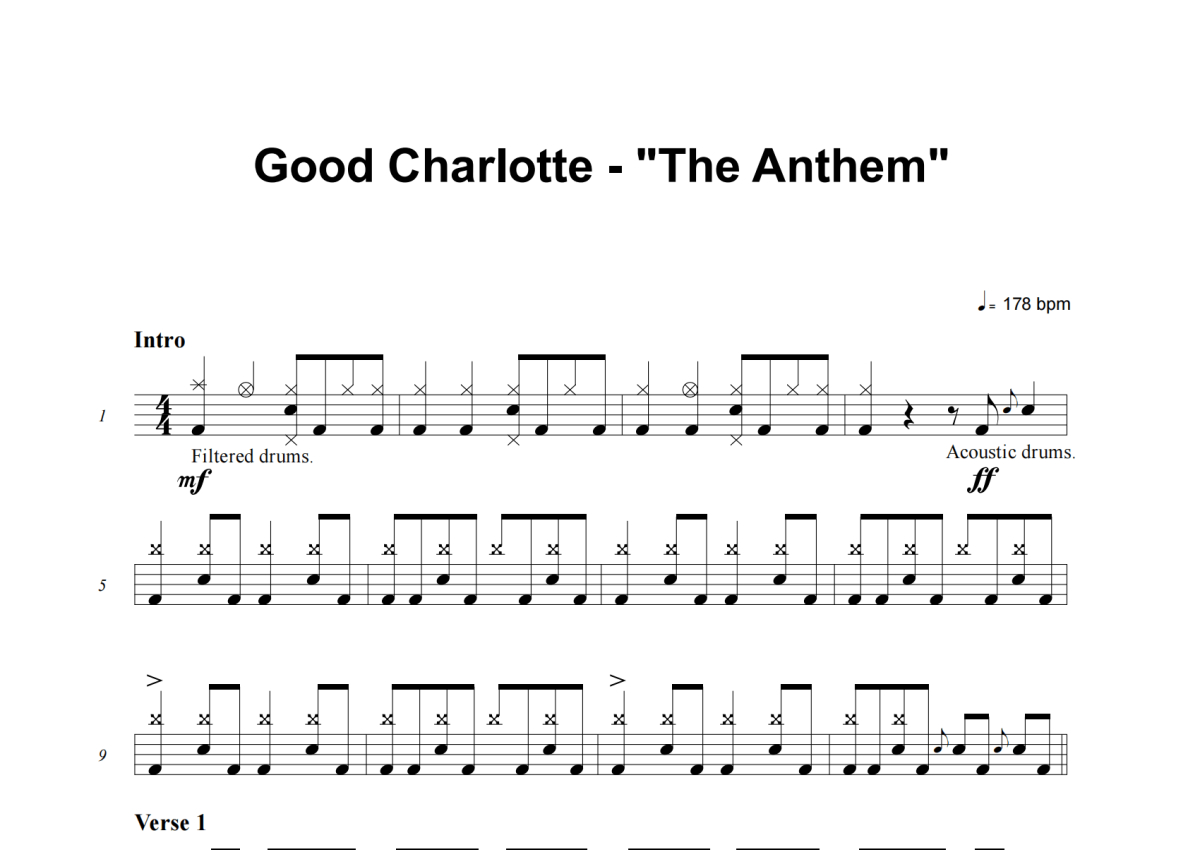 Good Charlotte《The Anthem》架子鼓谱