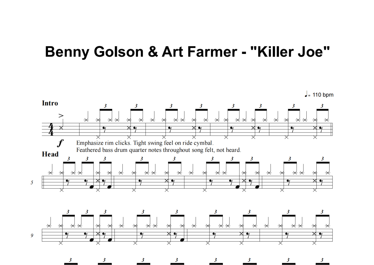 Art Farmer, Benny Golson《Killer Joe》架子鼓谱