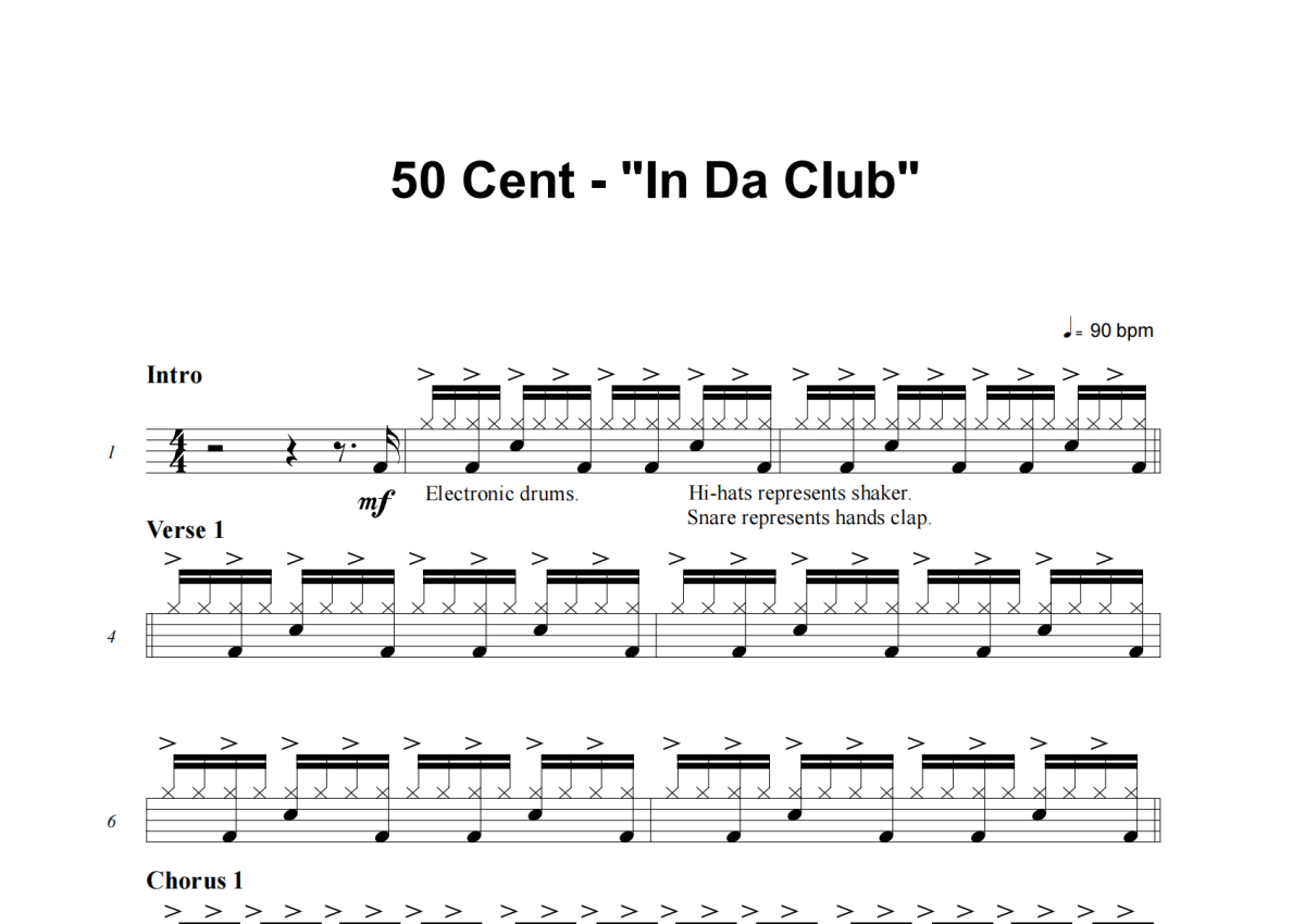 50 Cent《In Da Club》架子鼓谱