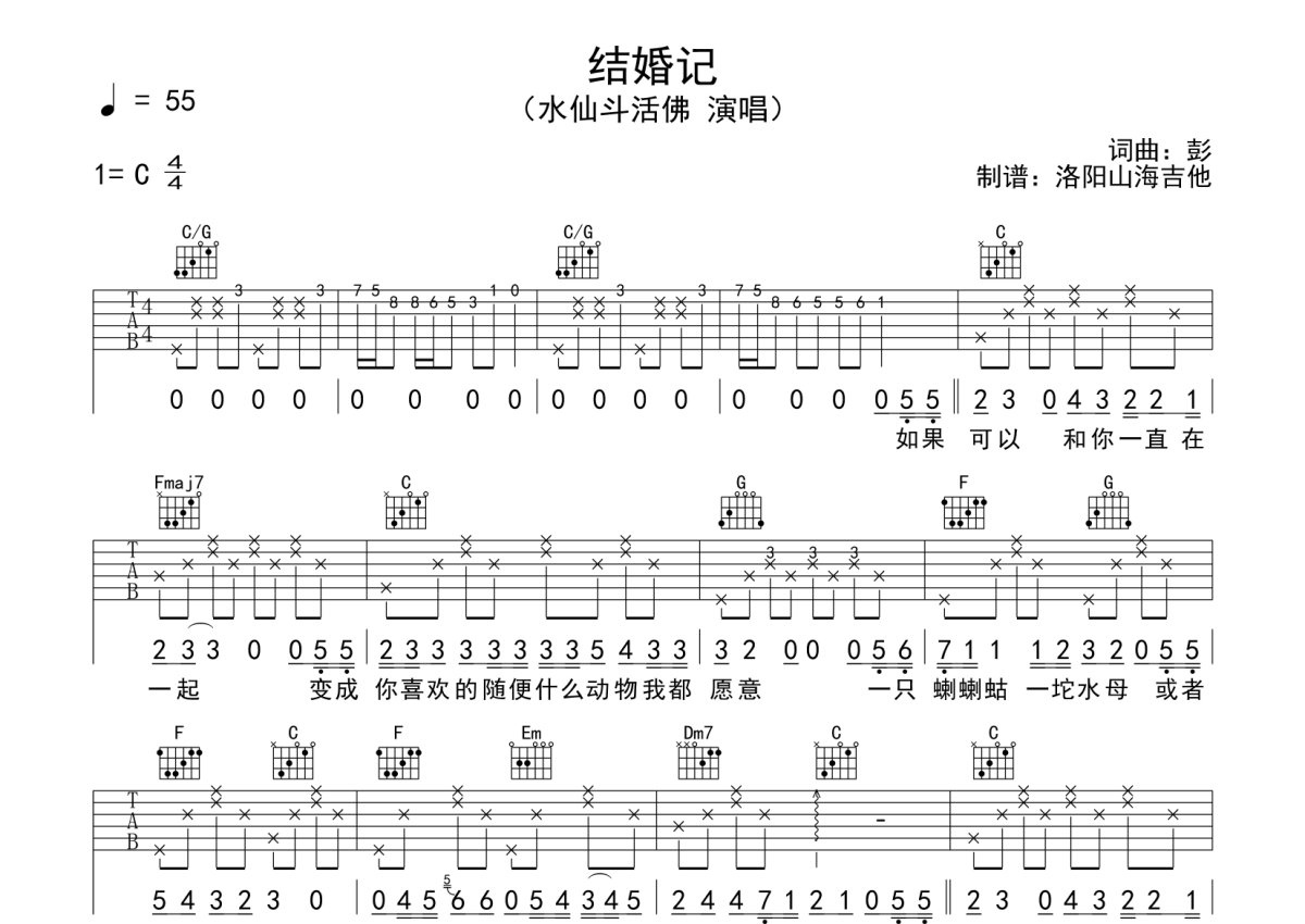 水仙斗活佛《结婚记》吉他谱 - C调弹唱六线谱