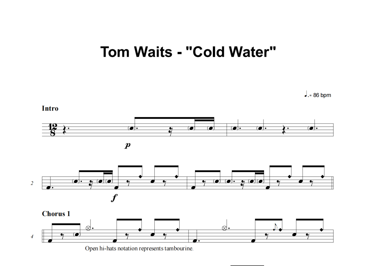 Tom Waits《Cold Water》架子鼓谱