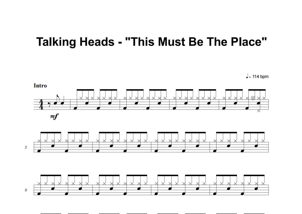 Talking Heads《This Must Be The Place》架子鼓谱
