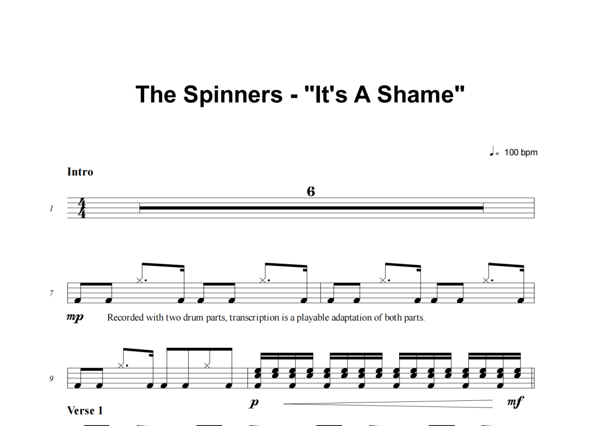 《It's A Shame》是The Spinners演唱的一首歌曲,这份架子鼓谱共有五张高清图谱,图谱由 @失眠的土豆 编配上传,图谱使用五线谱编配,使用这份It's A Shame架子鼓谱,你将能够轻松地敲打出这首The Spinners的It's A Shame,快来尝试吧。
