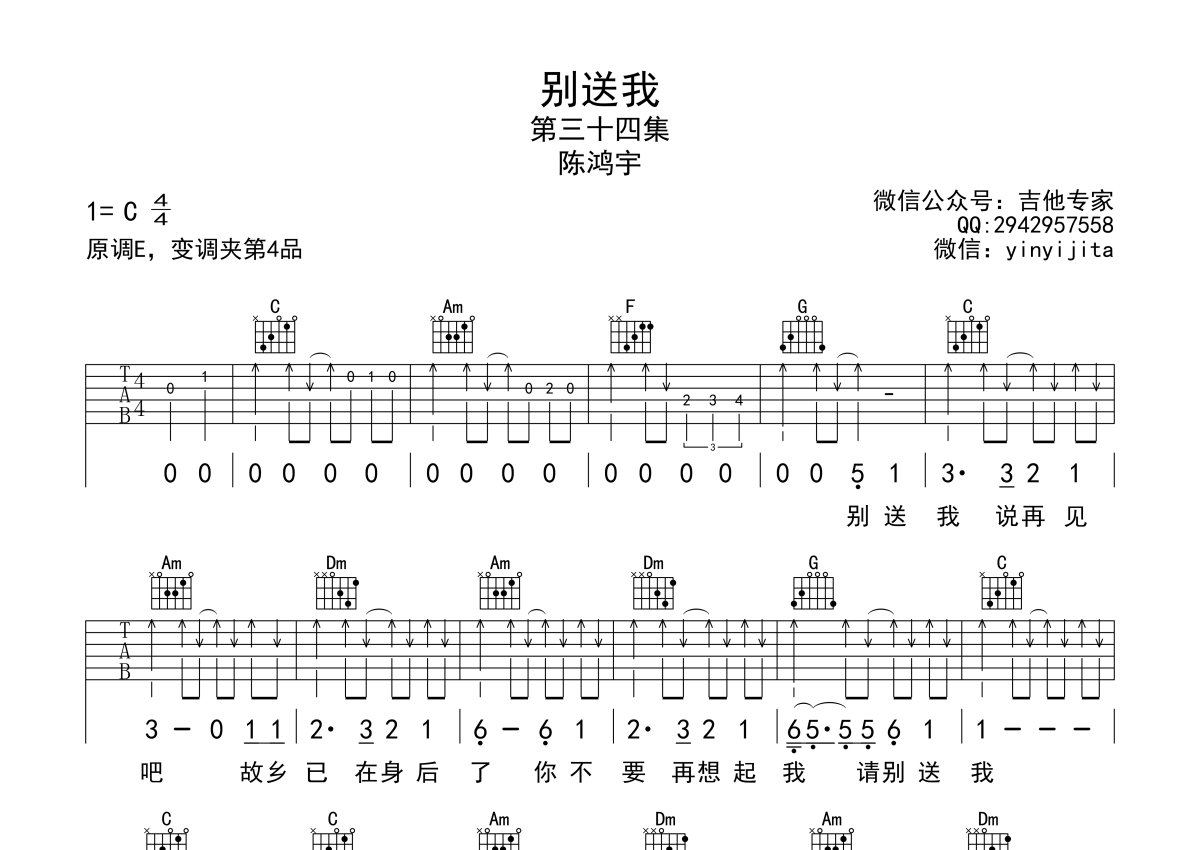 陈鸿宇《别送我》吉他谱 - C调弹唱六线谱