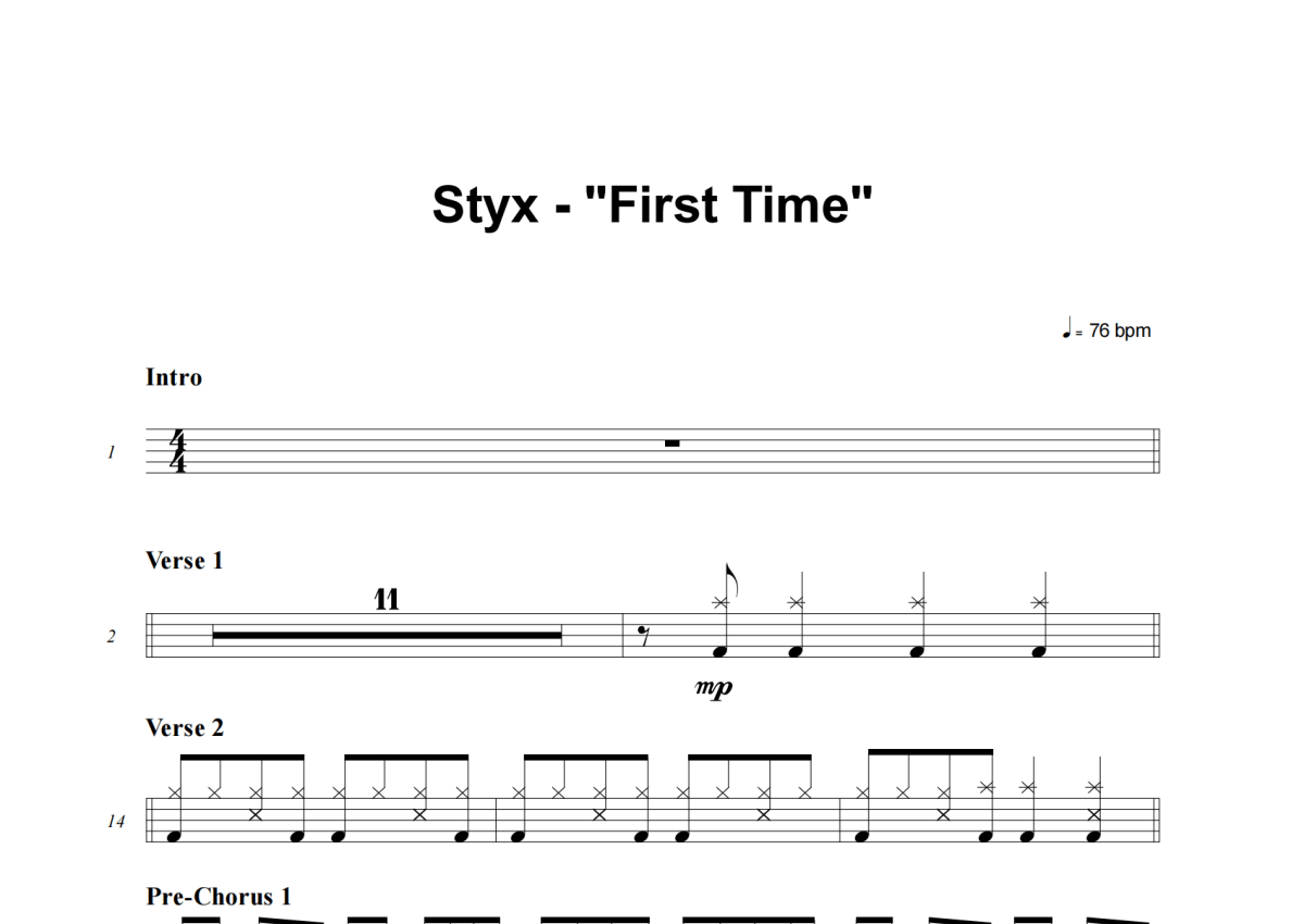 Styx《First Time》架子鼓谱