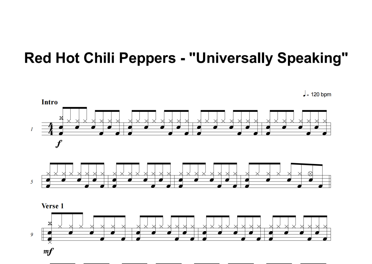 Red Hot Chili Peppers《Universally Speaking》架子鼓谱