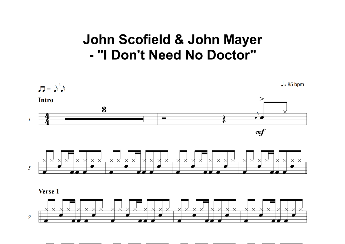 John Scofield & John Mayer《I Don't Need No Doctor》架子鼓谱
