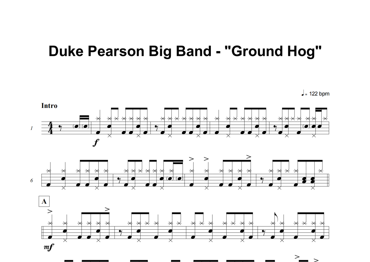 Duke Pearson Big Band《Ground Hog》架子鼓谱