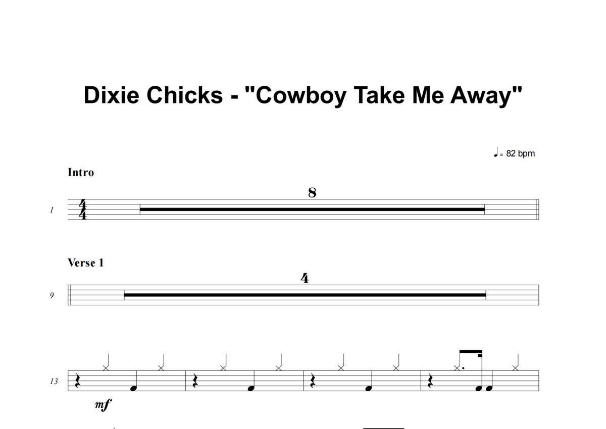 Dixie Chicks《Cowboy Take Me Away》架子鼓谱