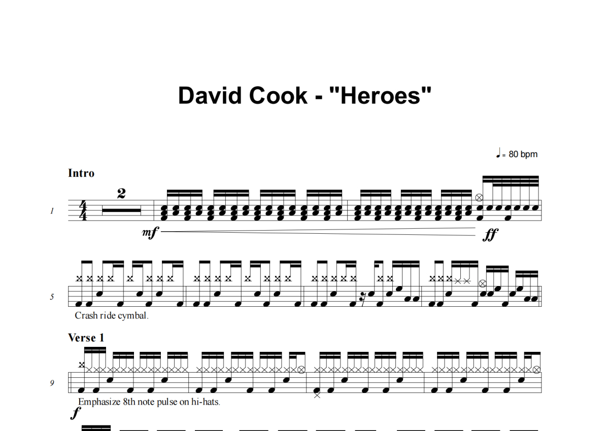 David Cook《Heroes》架子鼓谱