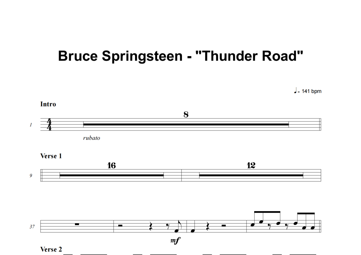 Bruce Springsteen《Thunder Road》架子鼓谱