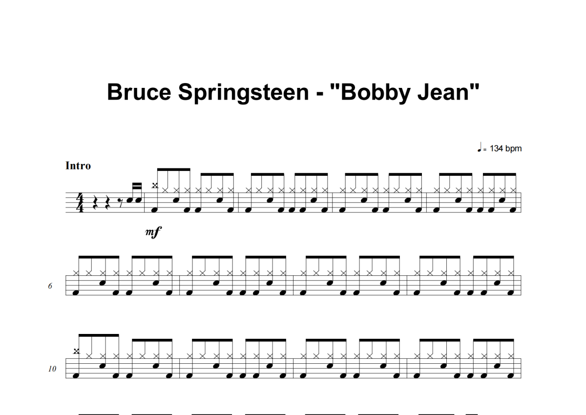 Bruce Springsteen《Bobby Jean》架子鼓谱