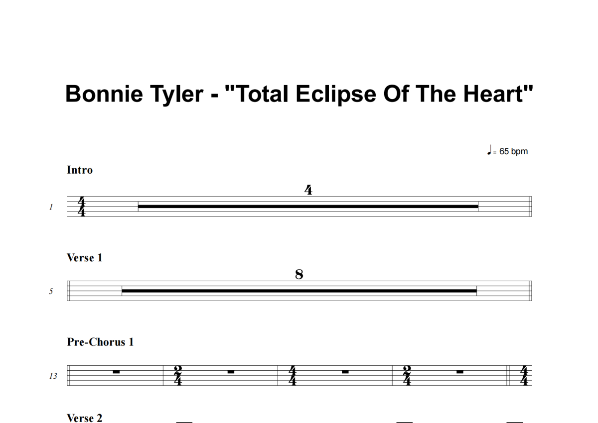 Bonnie Tyler《Total Eclipse Of The Heart》架子鼓谱