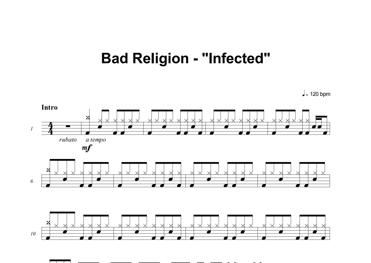 Bad Religion《Infected》架子鼓谱