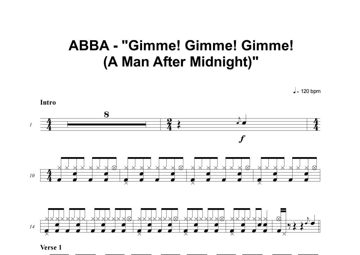 ABBA《Gimme! Gimme! Gimme! (A Man After Midnight)》架子鼓谱