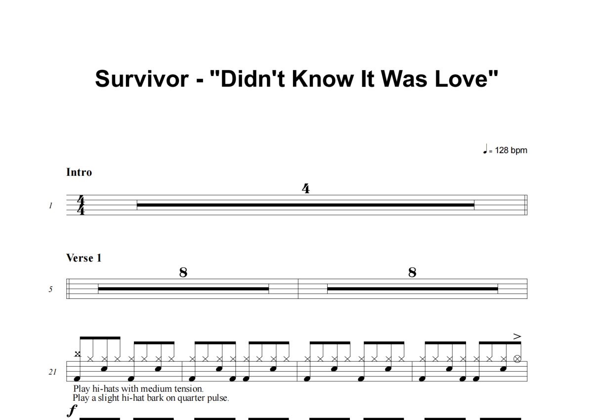 Survivor《Didn't Know It Was Love》架子鼓谱