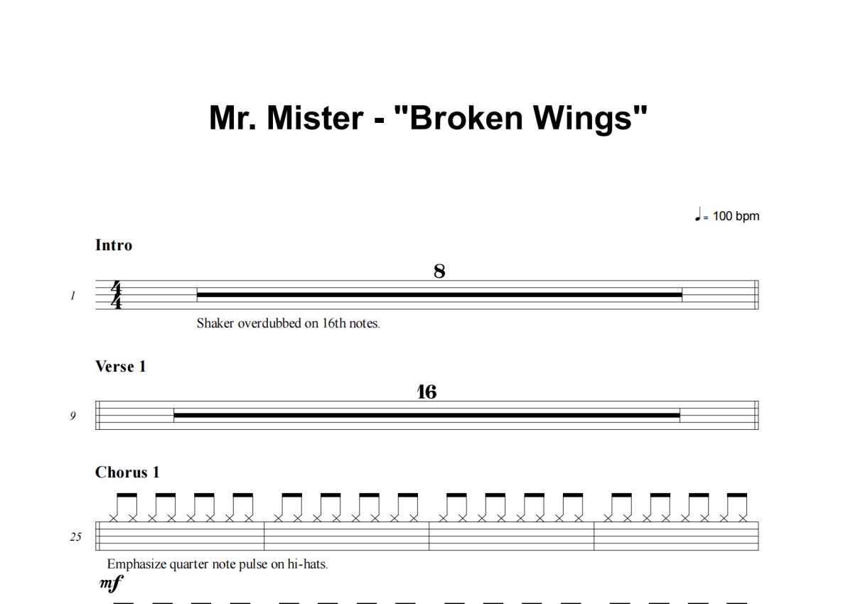 Mr. Mister《Broken Wings》架子鼓谱