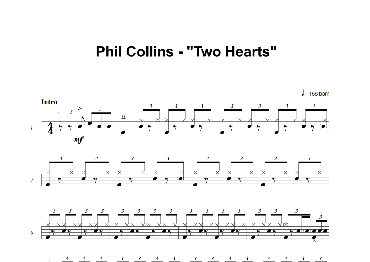 Phil Collins《Two Hearts》架子鼓谱
