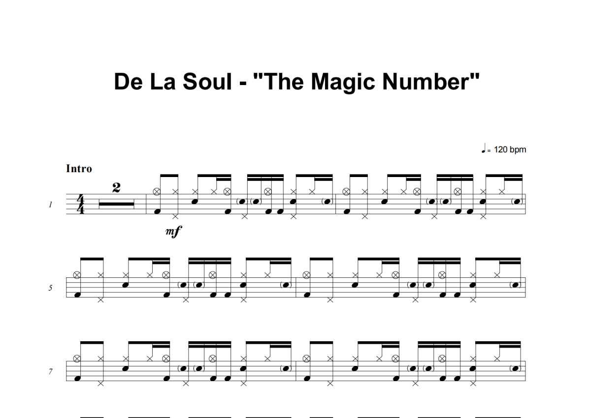 《The Magic Number》是De La Soul演唱的一首歌曲,这份架子鼓谱共有六张高清图谱,图谱由 @失眠的土豆 编配上传,图谱使用五线谱编配,使用这份The Magic Number架子鼓谱,你将能够轻松地敲打出这首De La Soul的The Magic Number,快来尝试吧。