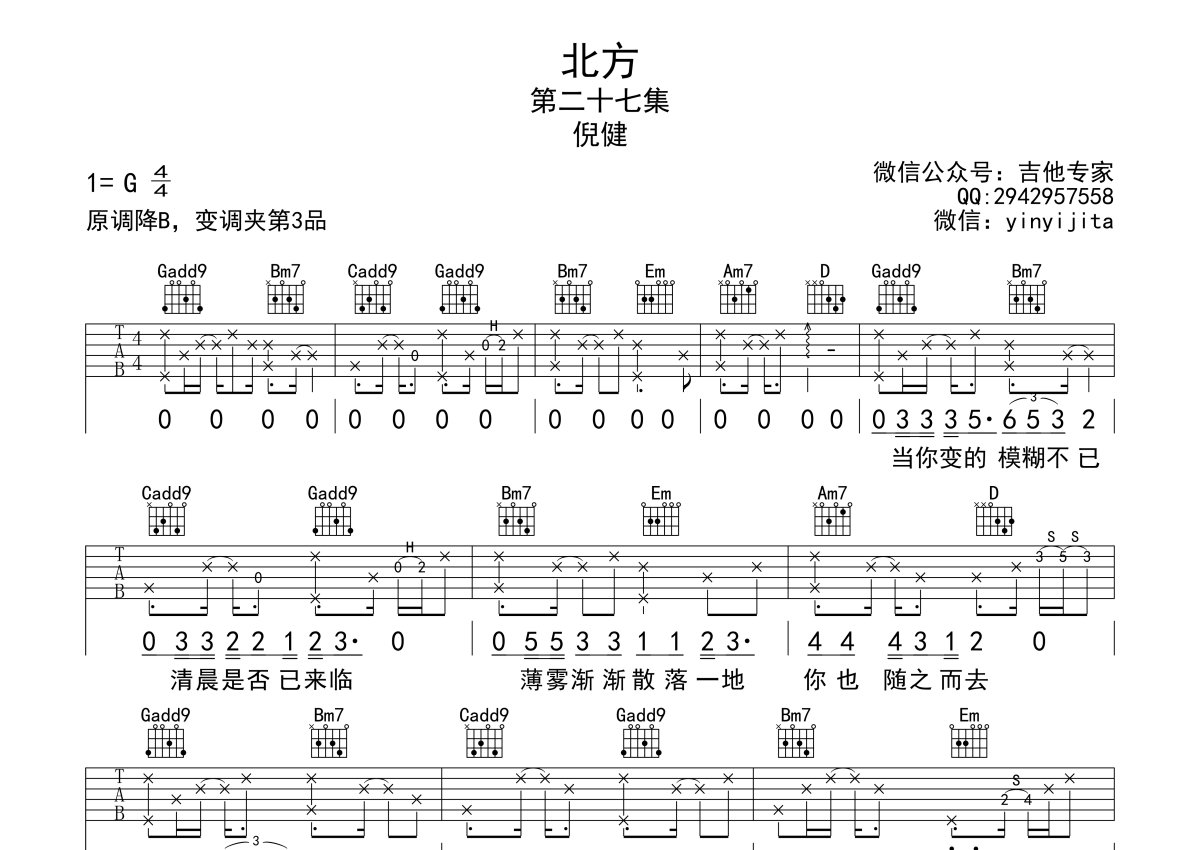 倪健《北方》吉他谱 - G调弹唱六线谱
