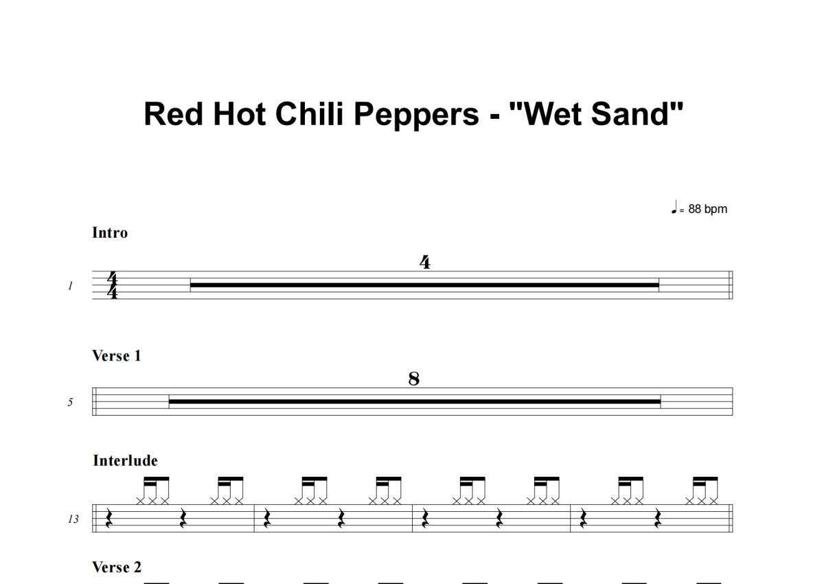 Red Hot Chili Peppers《Wet Sand》架子鼓谱