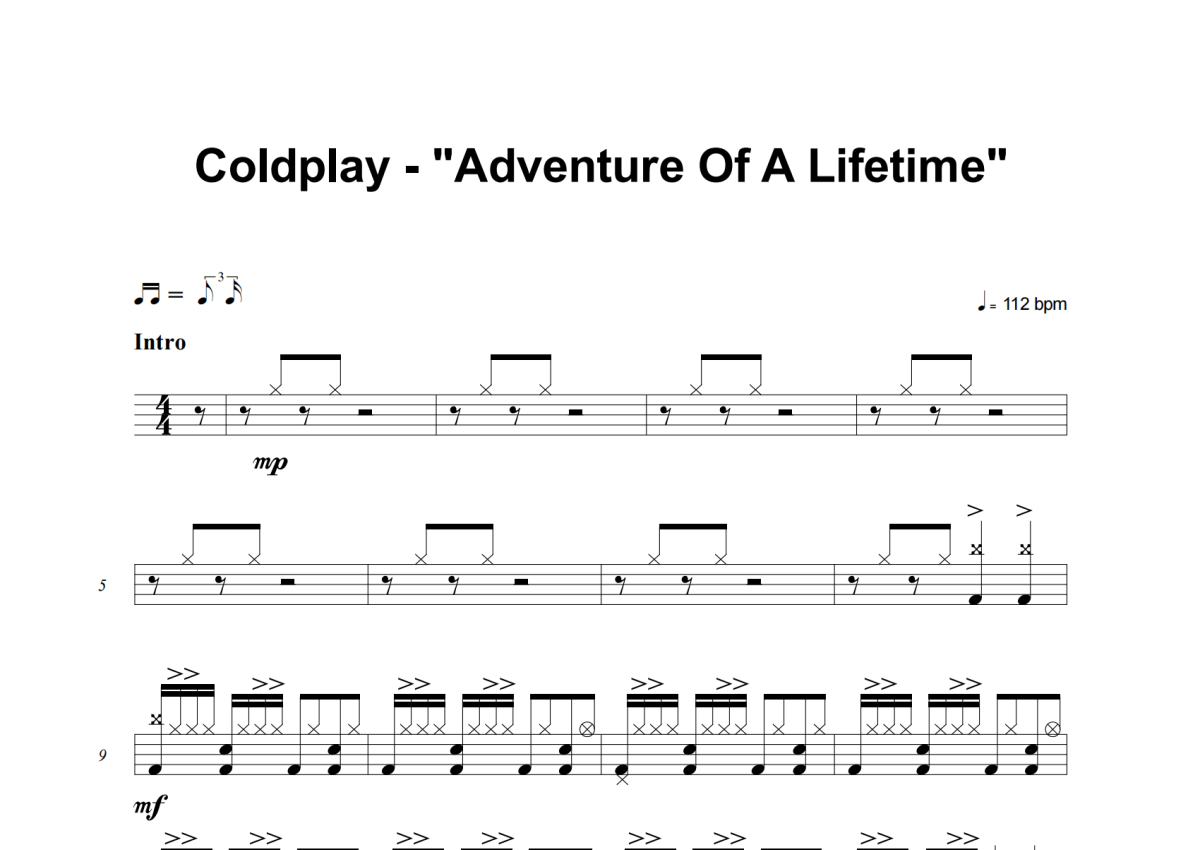 Coldplay《Adventure Of A Lifetime》架子鼓谱