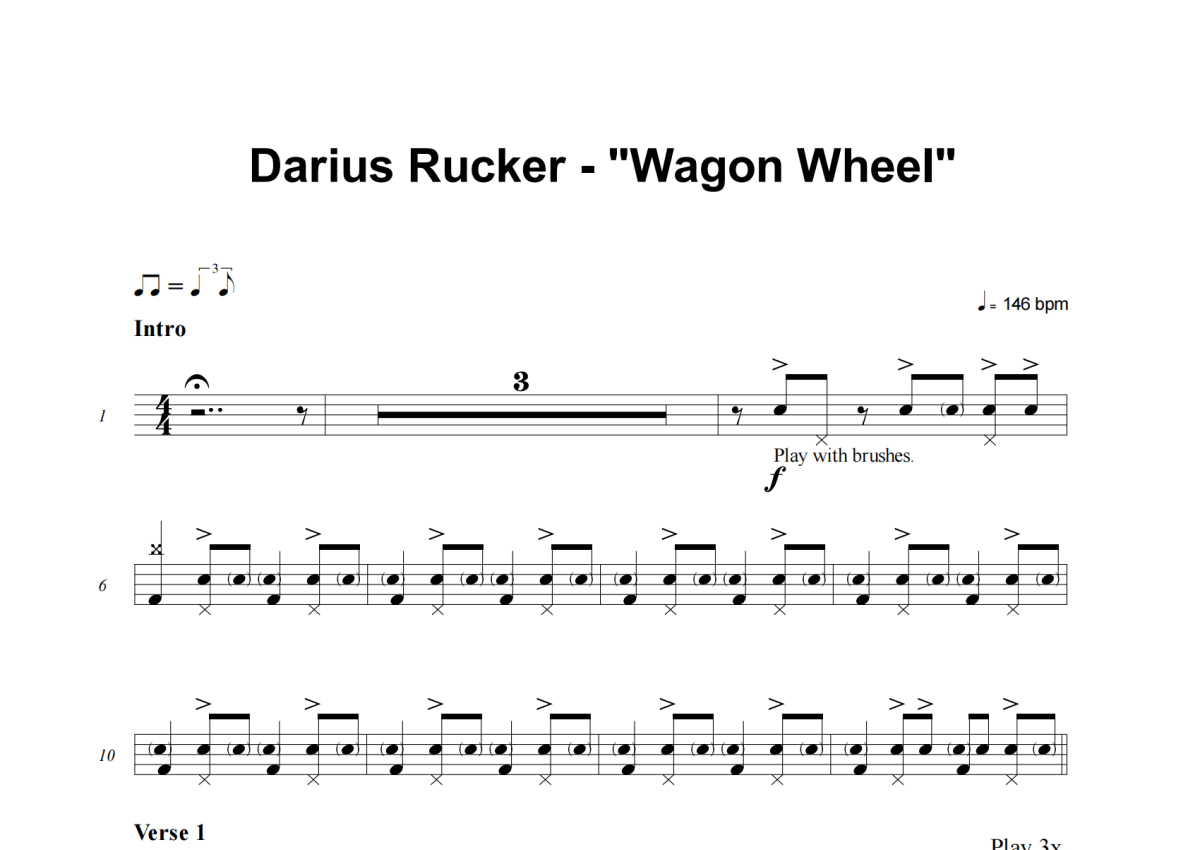 Darius Rucker《Wagon Wheel》架子鼓谱