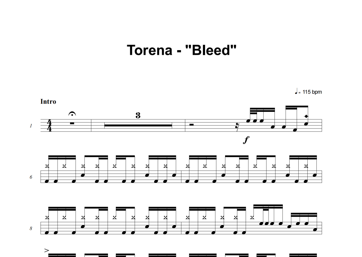 《Bleed》是Torena演唱的一首歌曲,这份架子鼓谱共有四张高清图谱,图谱由 @失眠的土豆 编配上传,图谱使用五线谱编配,使用这份Bleed架子鼓谱,你将能够轻松地敲打出这首Torena的Bleed,快来尝试吧。