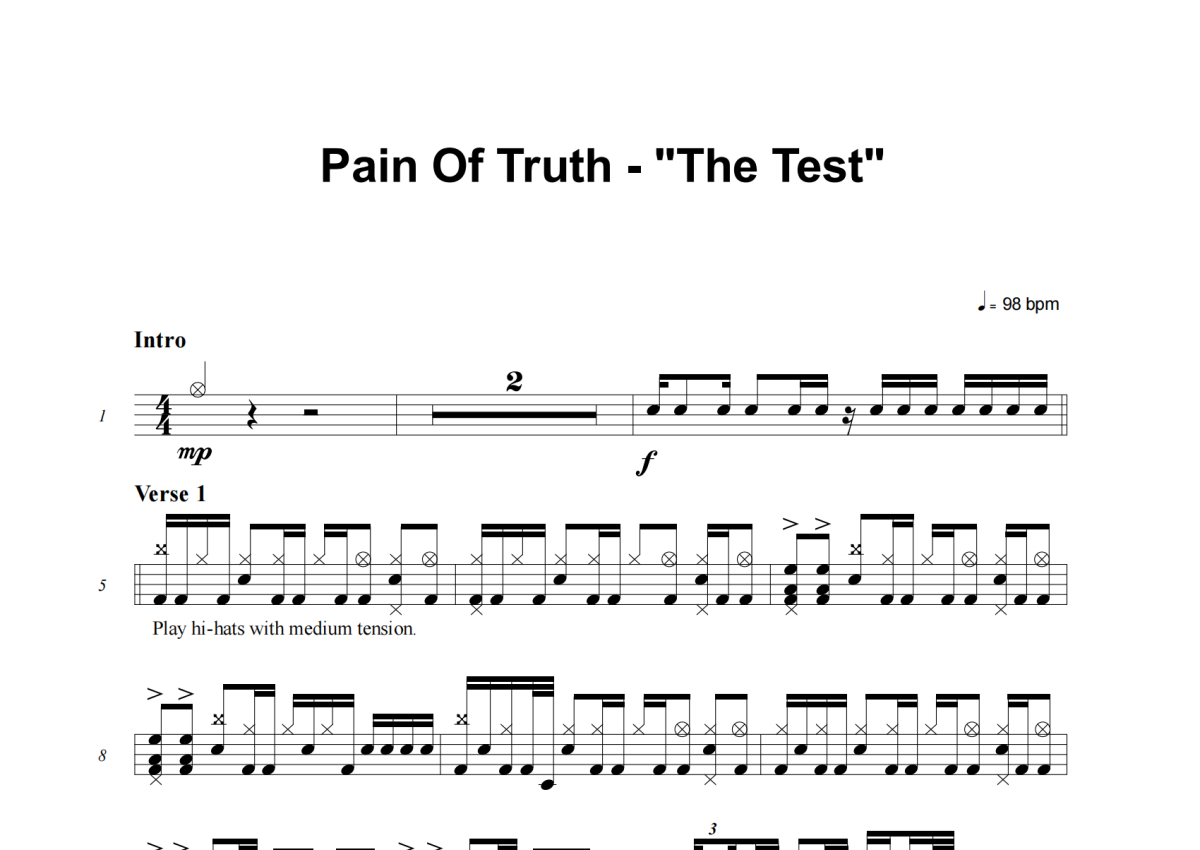 Pain Of Truth《The Test》架子鼓谱