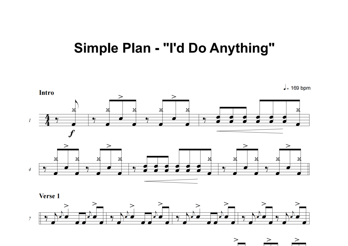 Simple Plan《I'd Do Anything》架子鼓谱