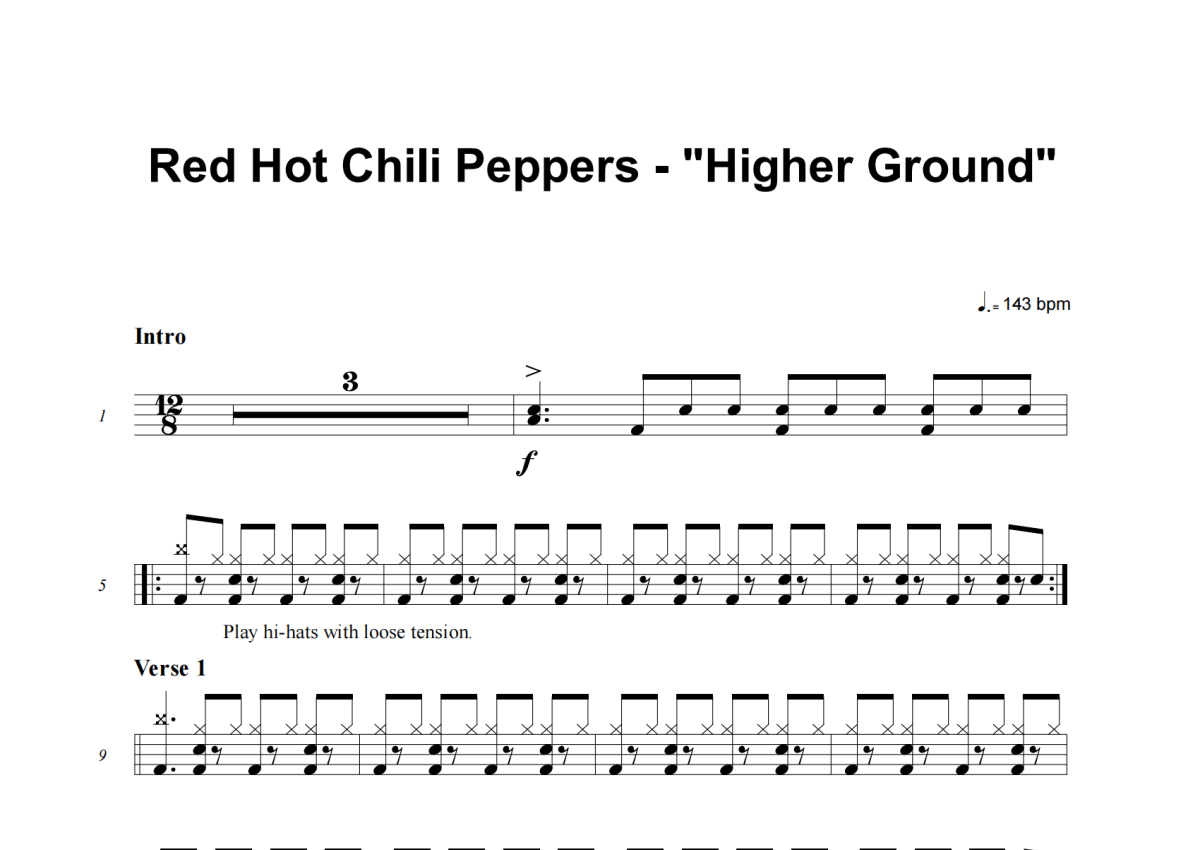 Red Hot Chili Peppers《Higher Ground》架子鼓谱