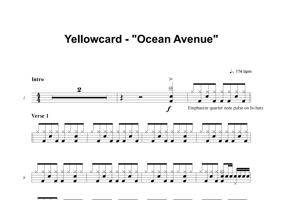 Yellowcard《Ocean Avenue》架子鼓谱