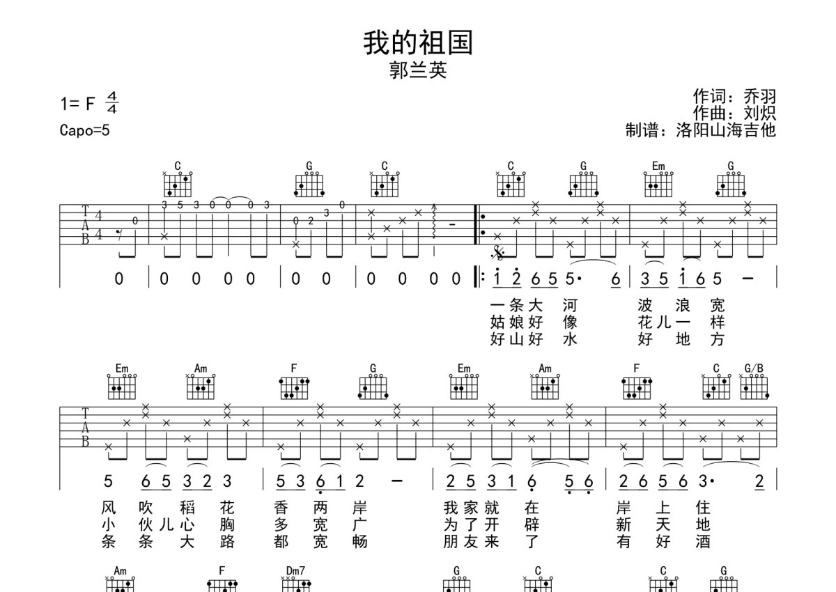 郭兰英《我的祖国》吉他谱 - C调弹唱六线谱