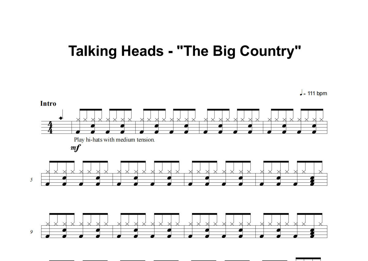 Talking Heads《The Big Country》架子鼓谱