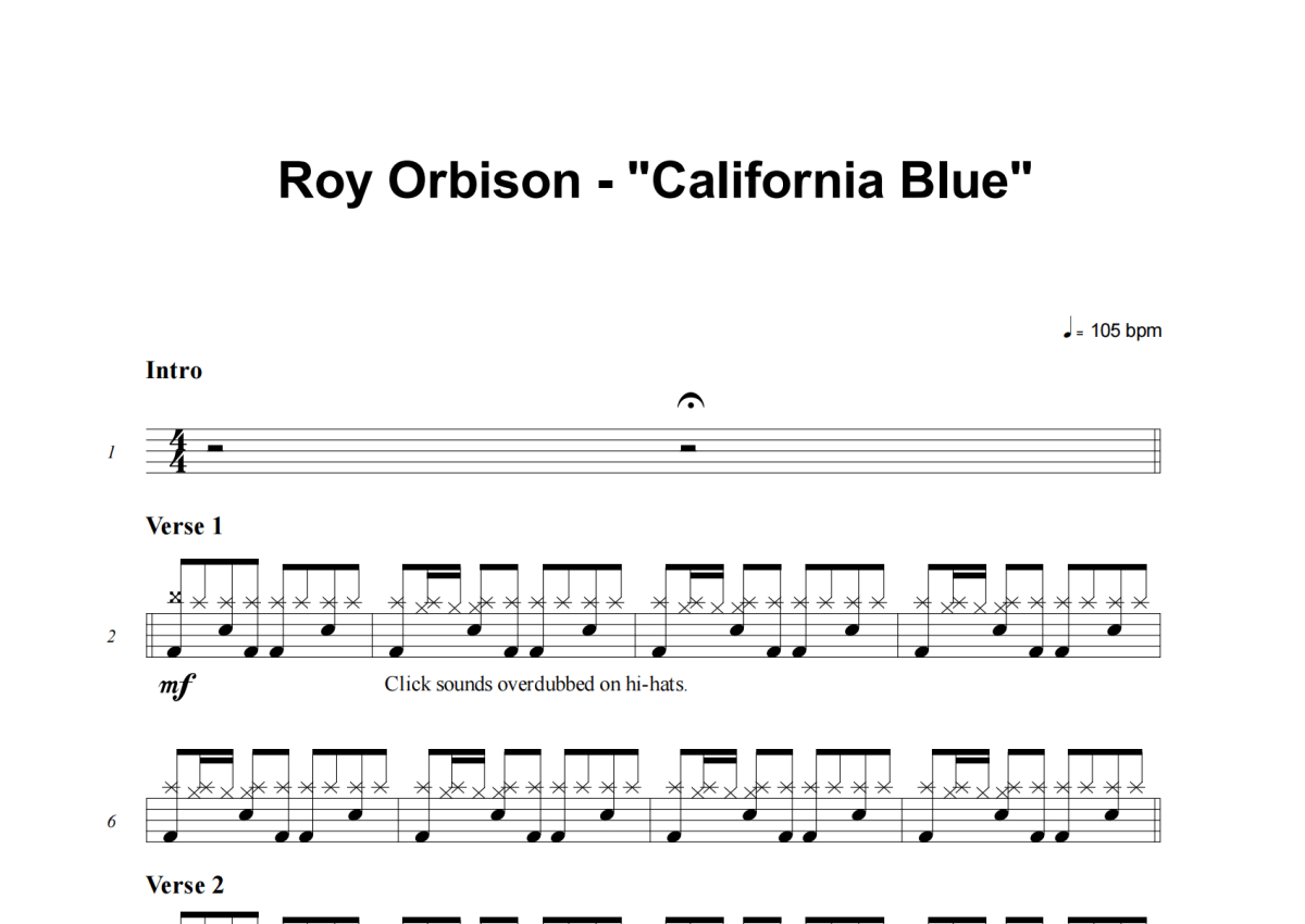 Roy Orbison《California Blue》架子鼓谱