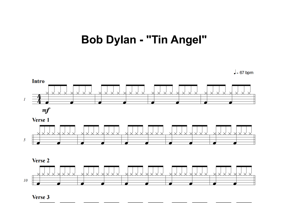 Bob Dylan《Tin Angel》架子鼓谱