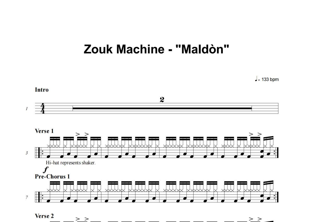 Zouk Machine《Maldon》架子鼓谱