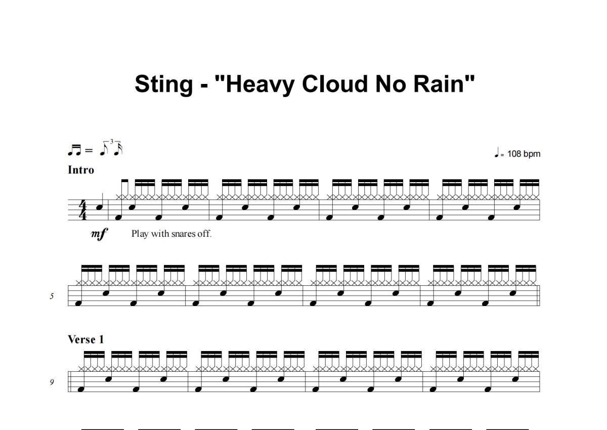 Sting《Heavy Cloud No Rain》架子鼓谱