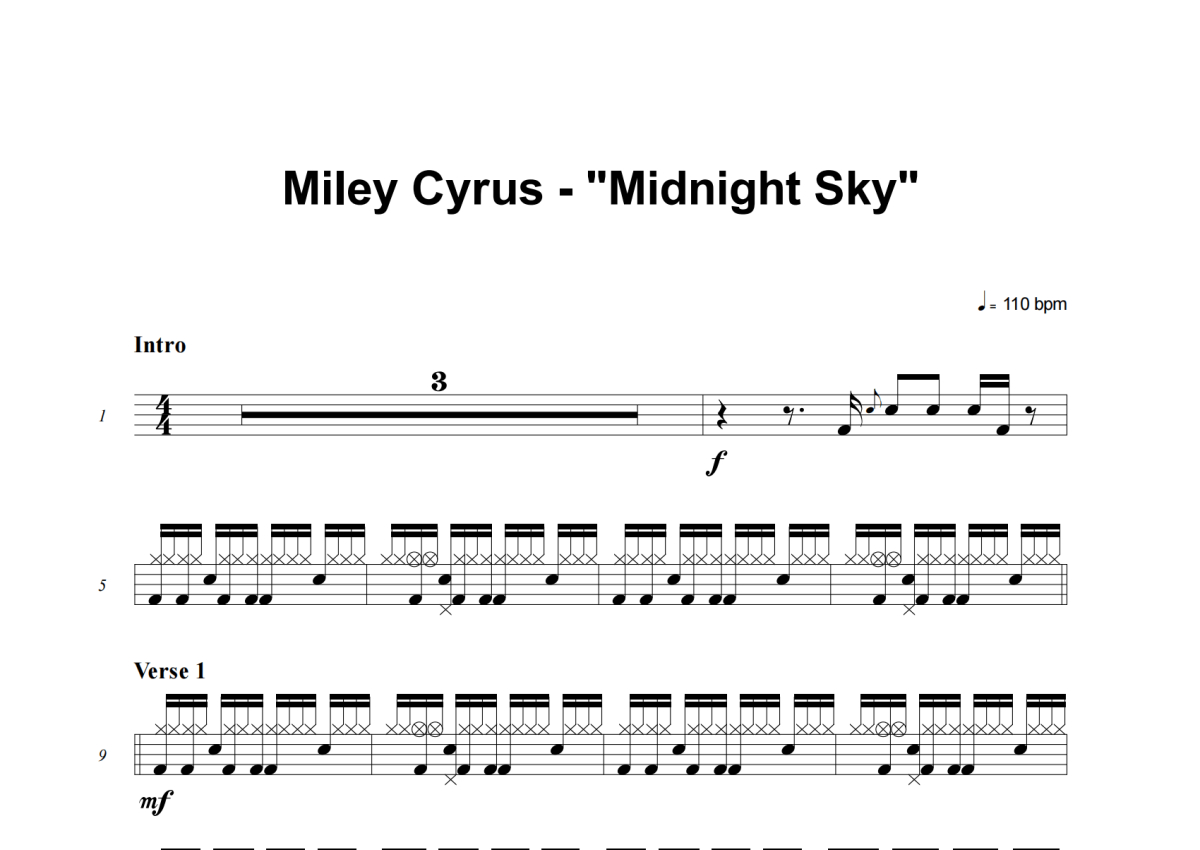 Miley Cyrus《Midnight Sky》架子鼓谱