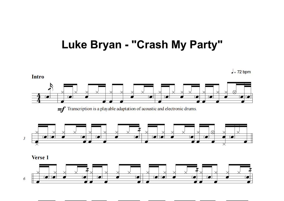 Luke Bryan《Crash My Party》架子鼓谱